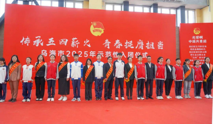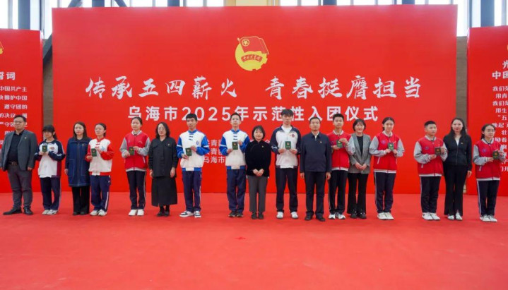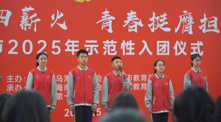 5月7日,共青团乌海市委员会、乌海市教育局联合共青团海南区委员会、海南区教育局在乌海市第十九中学隆重举行“传承五四薪火青春挺膺担当”乌海市2025年示范性入团仪式。